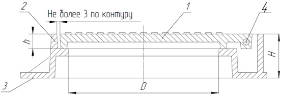 1 – крышка; 2 – корпус; 3 – опорная поверхность корпуса; 4 – бетон